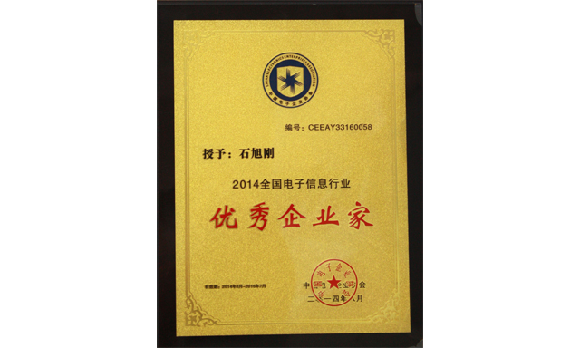 中威电子董事长石旭刚先生荣获“优秀企业家”称号